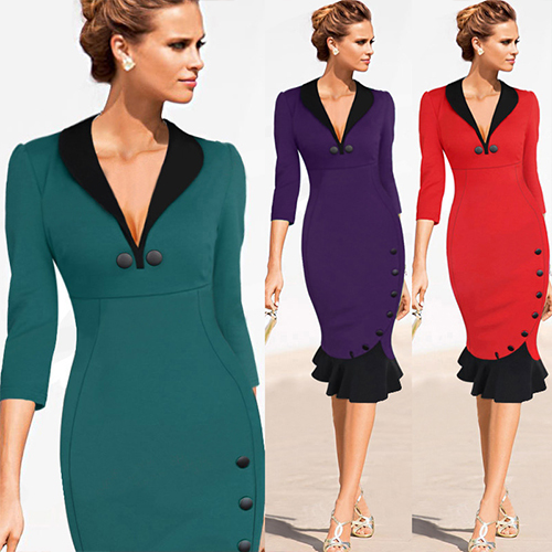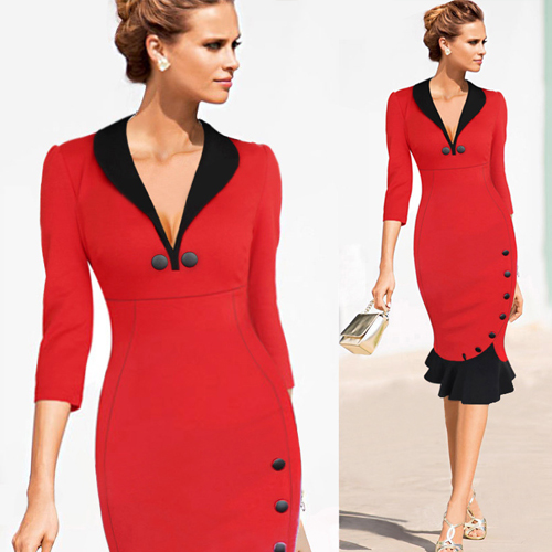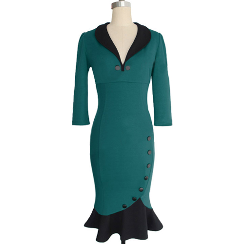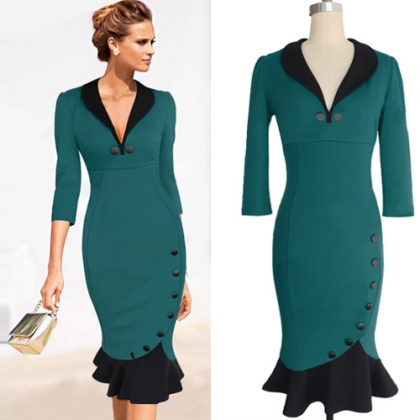 Features v-neck,3/4 sleeve and slim fit design. Fishtail design makes this dress more glamorous and attractive.