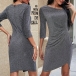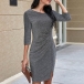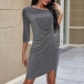 Take this chance to express your feminine sense with the help of this dress. It is finished with 3/4 sleeve and a fit silhouette design,this dress can showcase your slender figure. Moreover,the oblique v-neck and slit hem design will make this piece look more distinctive. Save this dress for your fancy events.