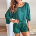 Fashion 3/4 Sleeve Round Neck Drawstring Waist Sequin Spliced Romper