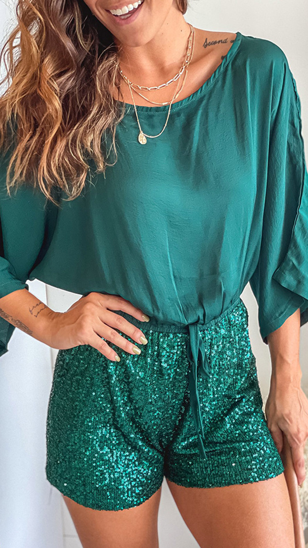 Wanna try a different style outfit? Then look no further than this romper! It is outfitted with 3/4 sleeve,round neck and drawstring waist,this piece can give you a comfortable day with its soft and breathable fabric. What's more,the sequin details will add some extra charm. So why not take interest in it?