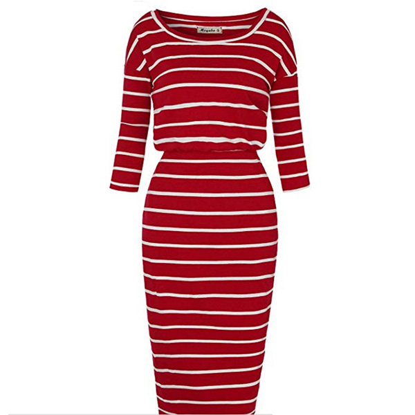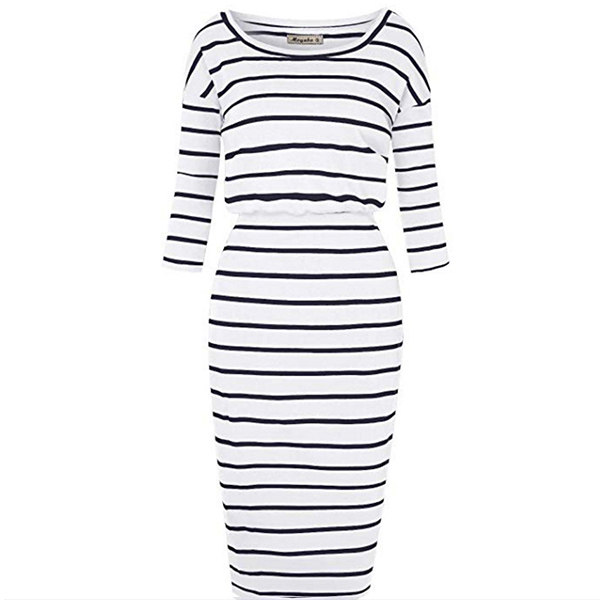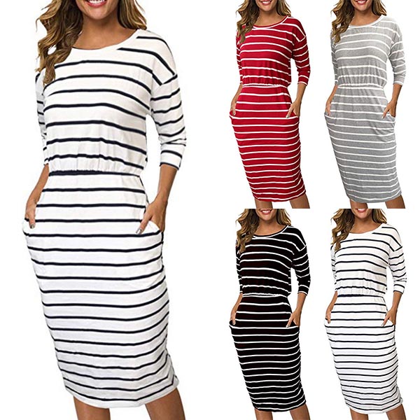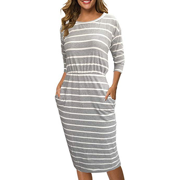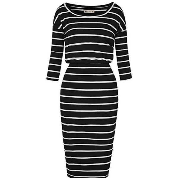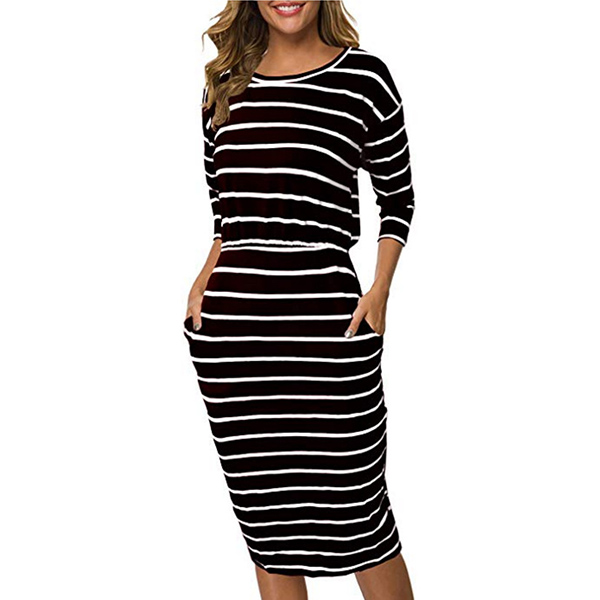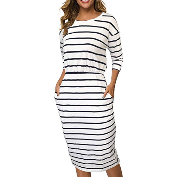 If you like striped element,then this dress can easily strike your mind. Finished with 3/4 sleeve,round neck and high waist design,this dress knows how to give you a cozy yet stylish style. For your rushed mornings or some lazy days,this easy-to-wear dress is a perfect solution.