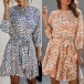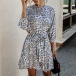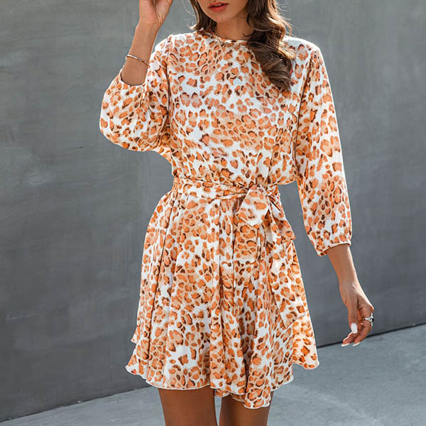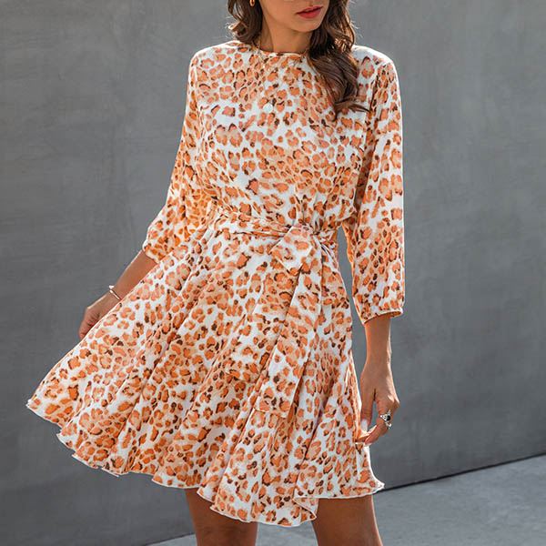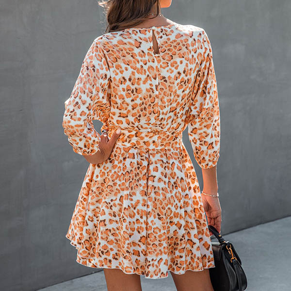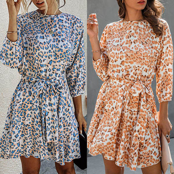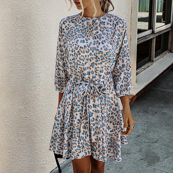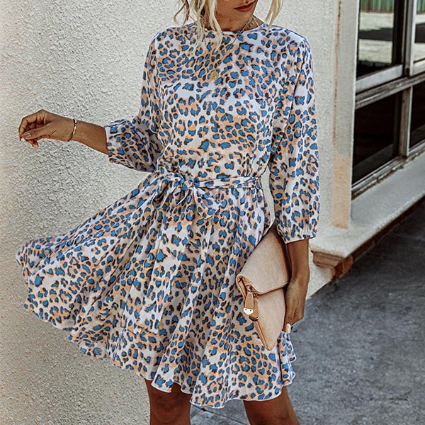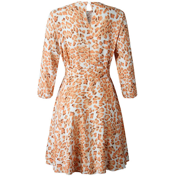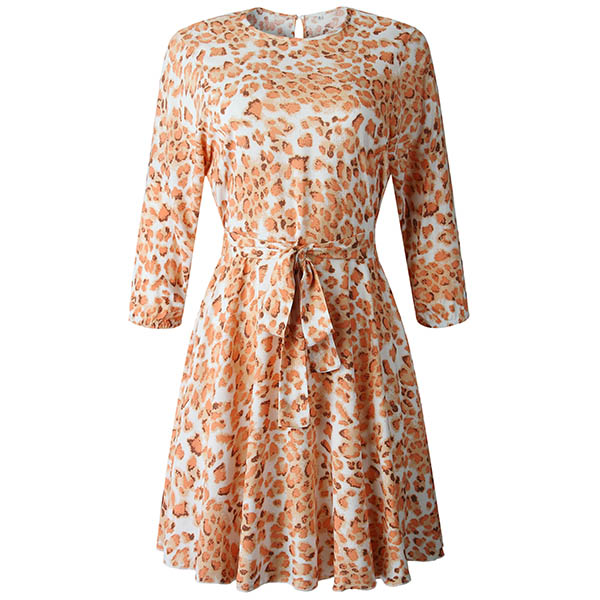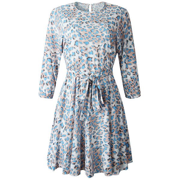 Fashion 3/4 Sleeve Round Neck Leopard Printed Dress