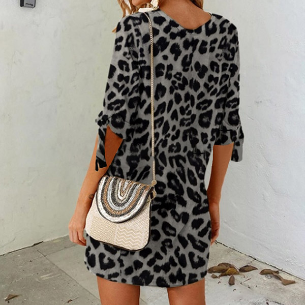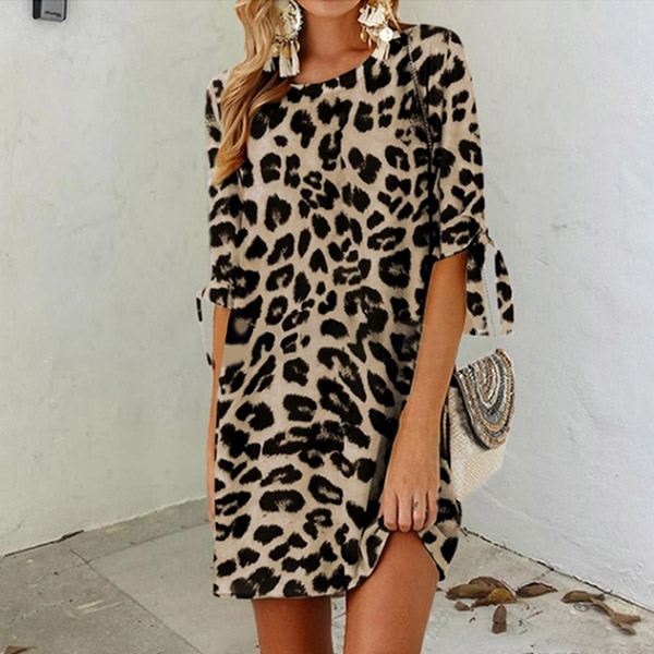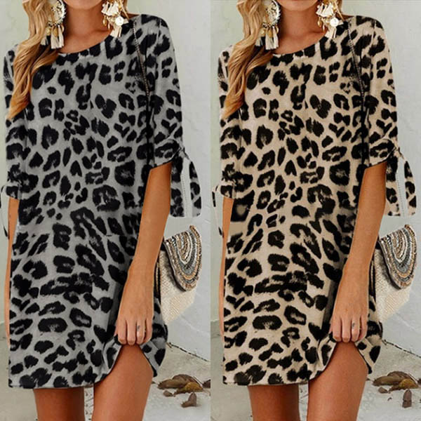 Fashion 3/4 Sleeve Round Neck Leopard Printed Dress
