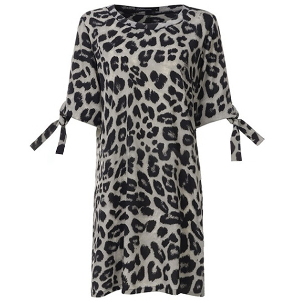 Step out with this dress to greet your wonderful day. The leopard printed details make this piece look so eye-catching. Finished with 3/4 sleeve, round neck and a loose silhouette, this dress also can ensure you a comfortable day. Simply need to match with your favourite shoes, then you can have a laid-back and fashionable daily style.
