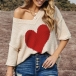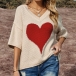 Fashion 3/4 Sleeve V-neck Heart Pattern Loose Knit Top