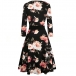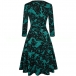 Fashion 3/4 Sleeve V-neck High Waist A-line Dress