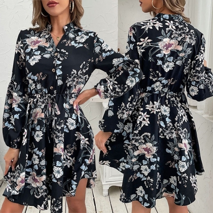 Make your simple and dull wardrobe look more colorful by adding this printed dress. Its vibrant floral print details make this piece look so eye-catching. Finished with 3/4 sleeve,v-neck and an irregular hem,this dress can make you look effortlessly charming and beautiful.