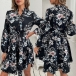 Fashion 3/4 Sleeve V-neck Irregular Hem Printed Dress