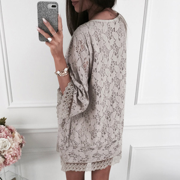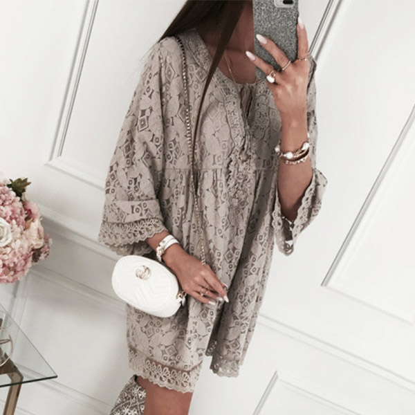 If style and comfort is what you're seeking for,then this lace dress is sure to strike your fancy. It is finished with 3/4 trumpet sleeve,v-neck and a loose silhouette design,this dress can offer you a comfortable day while it maintains your style.
