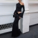 Fashion 3D Floral Decoration Two-piece Set Consist of Slant Shoulder Shirt and Maxi Skirt