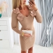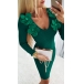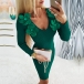 Fashion 3D Floral Decoration V-neck Long Sleeve Ribbed Bodycon Dress