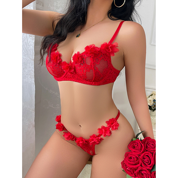 Fashion 3D Floral Lace Two-piece Lingerie Set