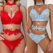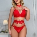 Fashion 3D Floral Semi-through Three-piece Lingerie Set