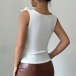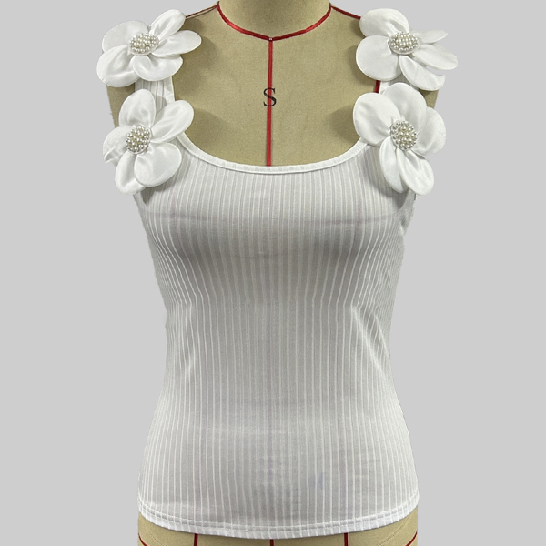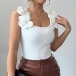 Fashion 3D Floral Square Neck Sleeveless Ribbed Shirt