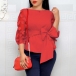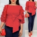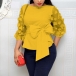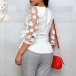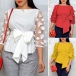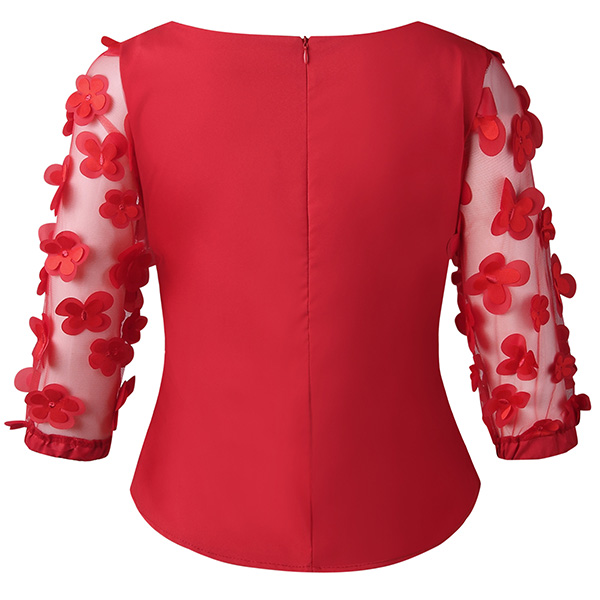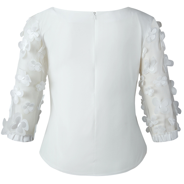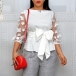 Fashion 3D Flower Gauze Spliced 3/4 Sleeve Bow-knot Top