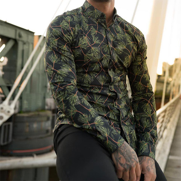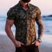 Fashion 3D Printed Stand Collar Short Sleeve Buttoned Shirt