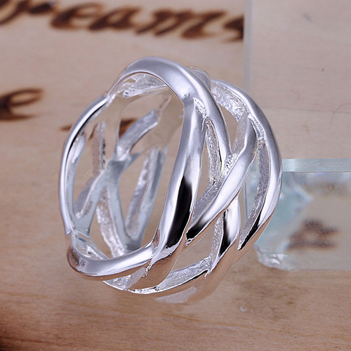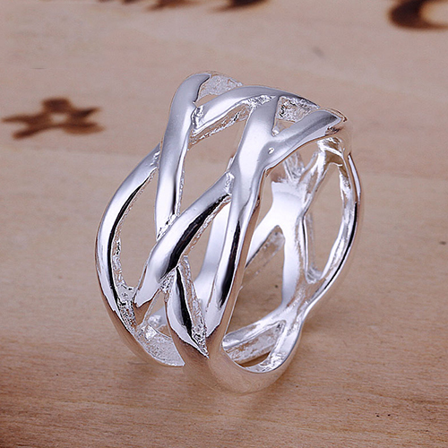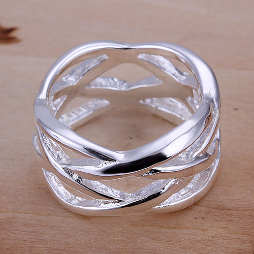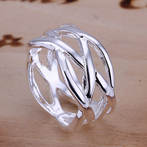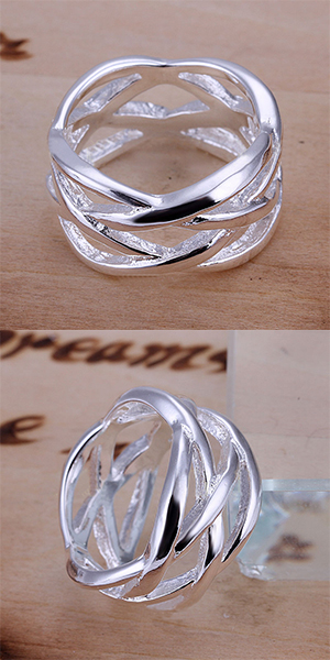 Crafted from silver tone material,this ring is characterized by hollow out