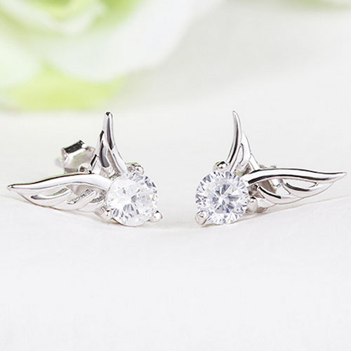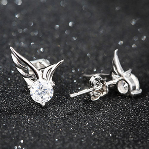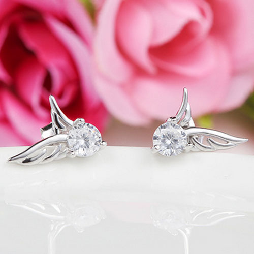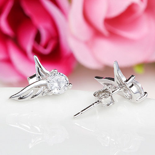 Fashion Imitation Rhinestone Angel Wings Stud Earrings