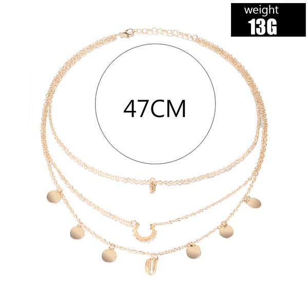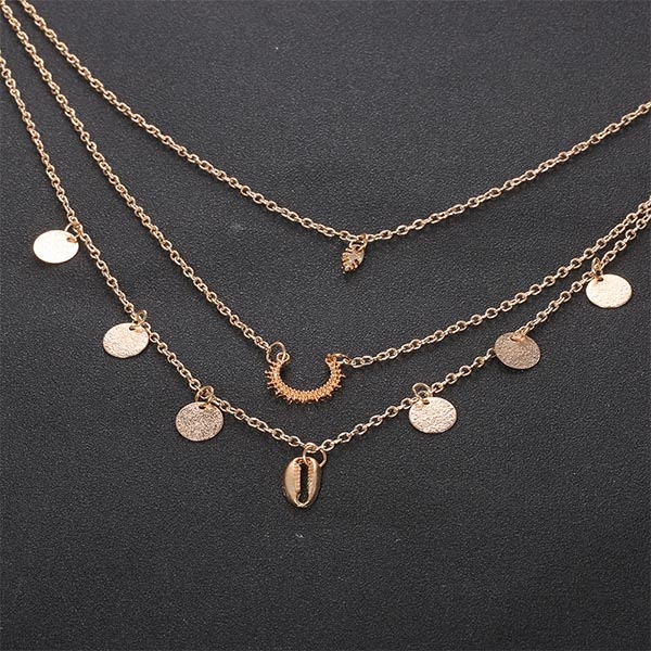 Bohemian Style Shell Leaf pendant Three-layer Necklace