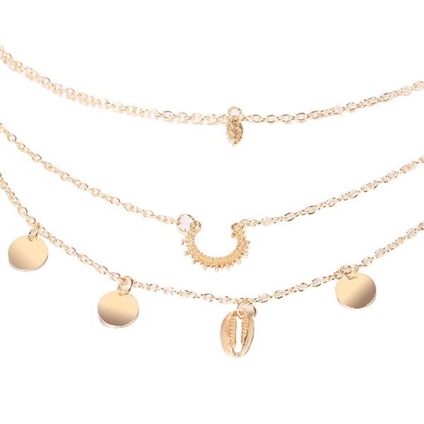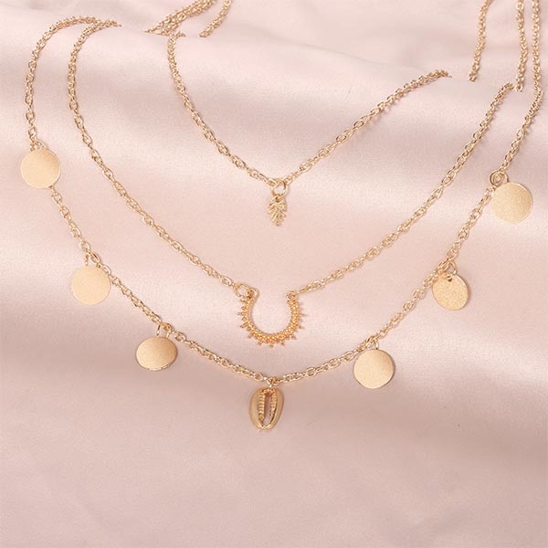 Finish a shining style with the help of this necklace. Three-layer style,decorated with shell and leaf pendants,