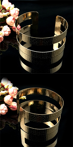 your accessories collection. The bracelet is styled with geometric shaped design and hollow out