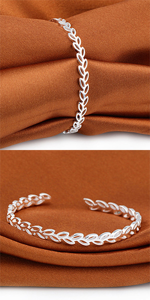 The open bracelet features leaf shaped design gives people a stylish and lovely look.