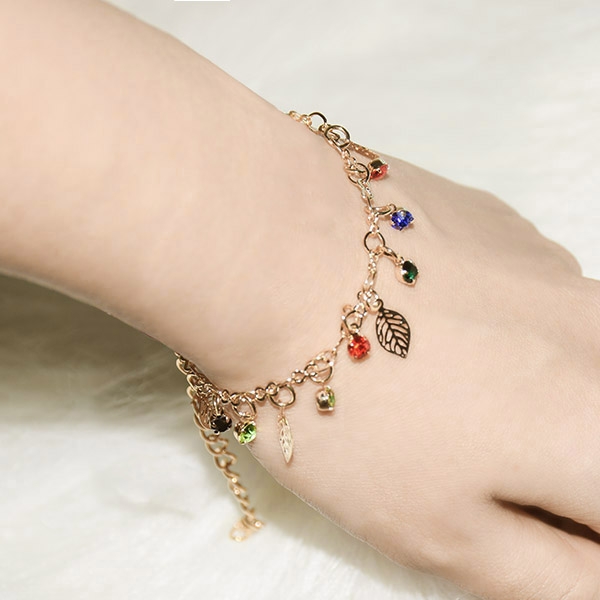Fashion All-match Leaf Tassels Rhinestone Bracelet /Anklet