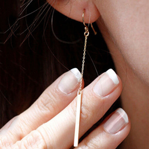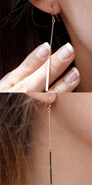 This pair of earrings is simple but fashion since it is styled with a 1-shaped pendant on it.