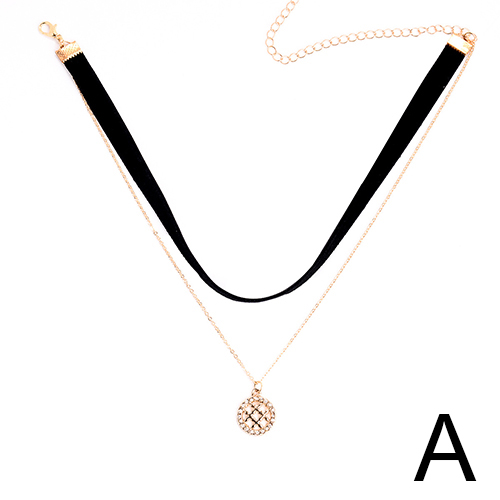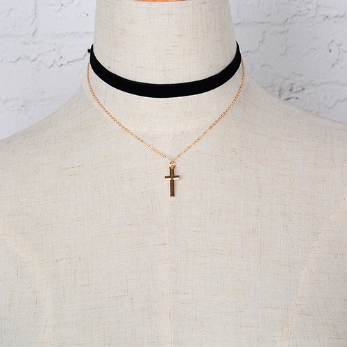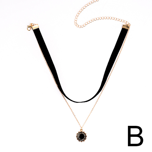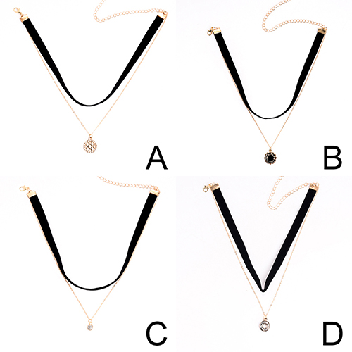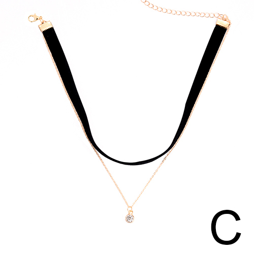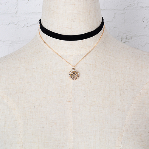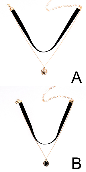 This choker necklace is crafted from faux suede cord and alloy chain, which makes it a fashion double-layered