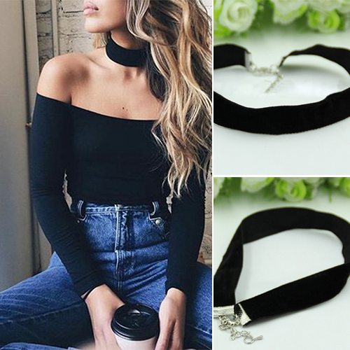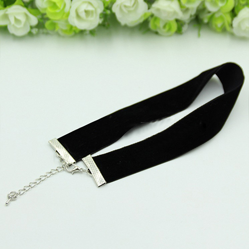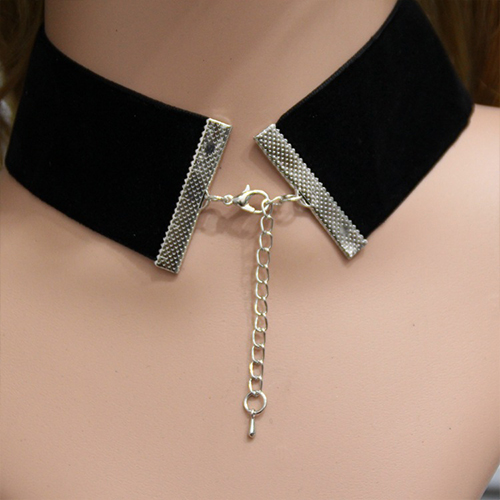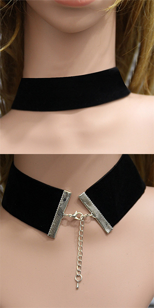 This choker is crafted from faux velvet fabric and it is equipped with an alloy extended