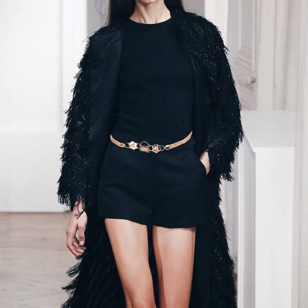 Such a chic and retro waist chain. Features gold color tone, gorgeous and shining. Designed with