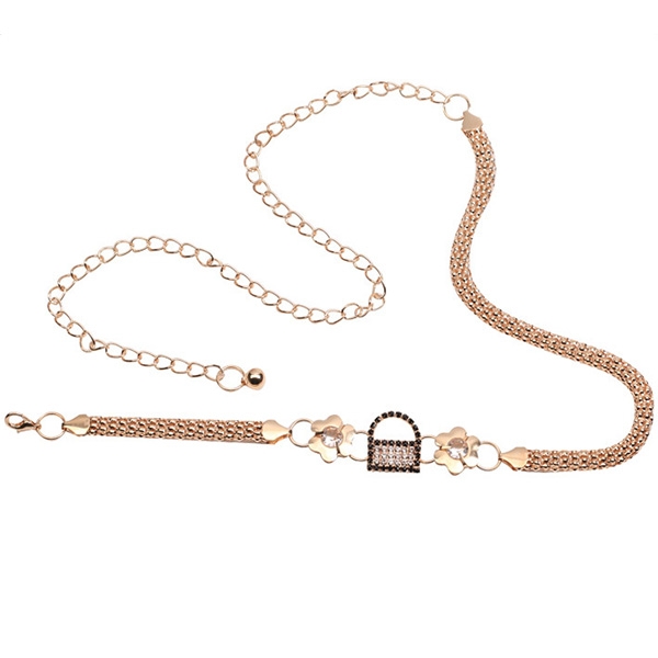 Fashion Alloy Rhinestone Lock Shaped Waist Chain