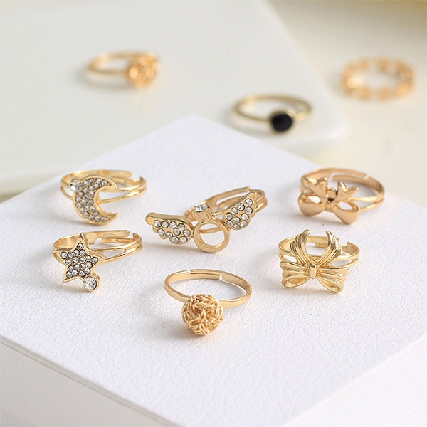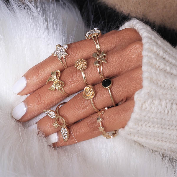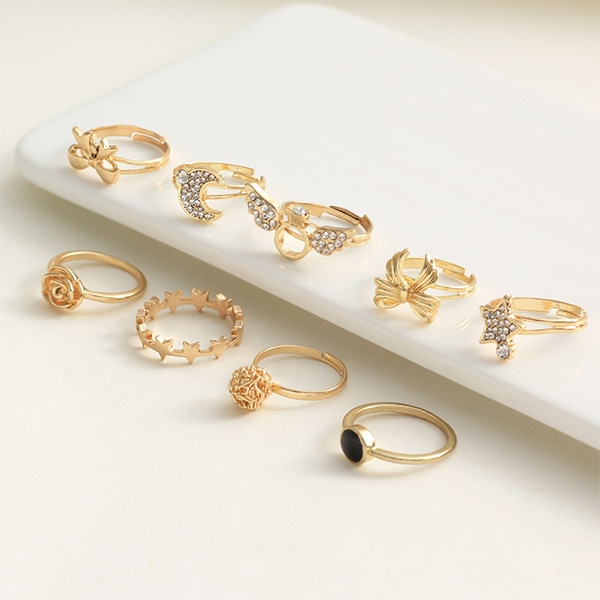 Enrich your accessory box with this ring set. It is designed with a classic yet stylish gold tone,consists of 9