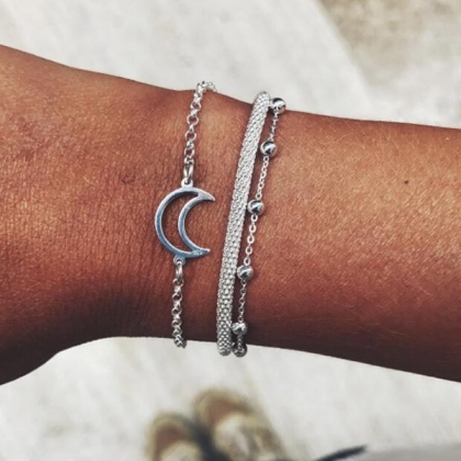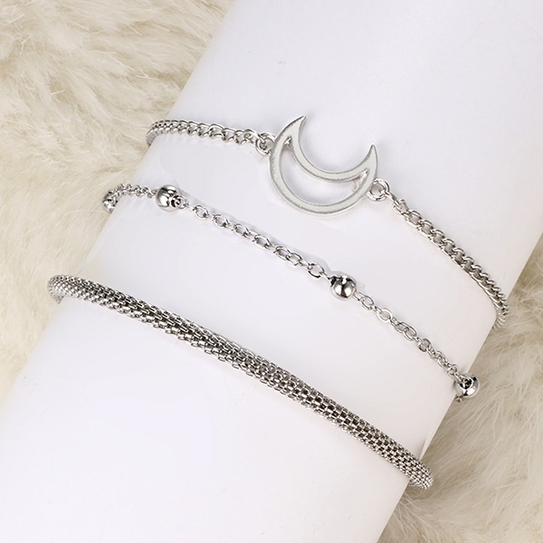 This bracelet set consists of three pieces different bracelets,coming with a classic yet stylish silver tone,