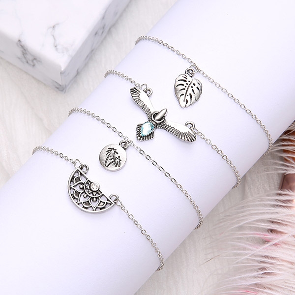 Fashion Eagle Leaf Pendant Bracelet Set 4 pcs/Set