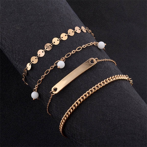 Features a classic yet stylish gold tone,this bracelet set consists of 4 pieces bracelets,