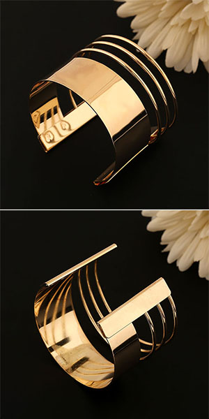 This gold-tone alloy bracelet features hollow out design,which can add some