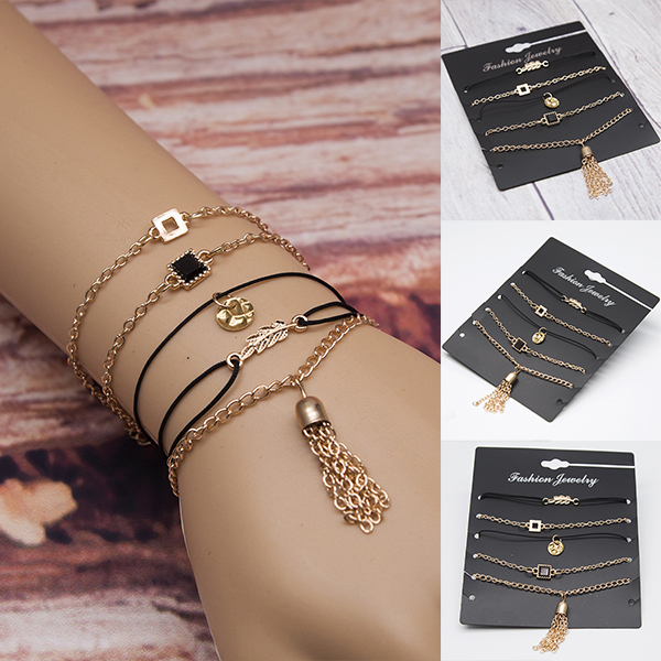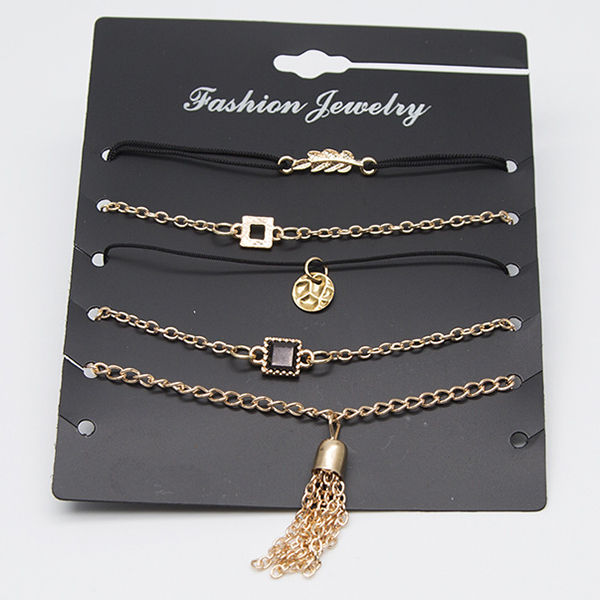 Fashion Gold-tone Leaf Tassel Pendant Bracelet Set 5 pcs/Set