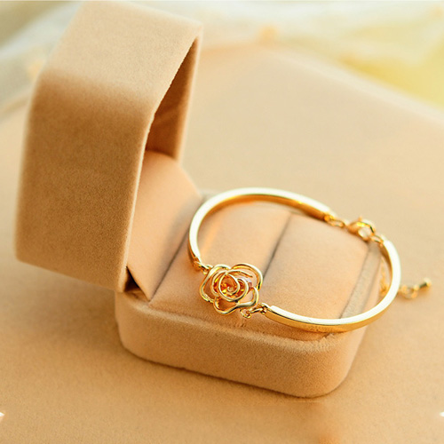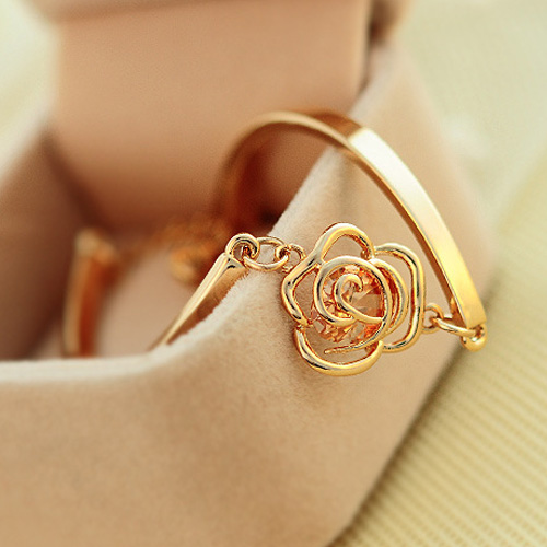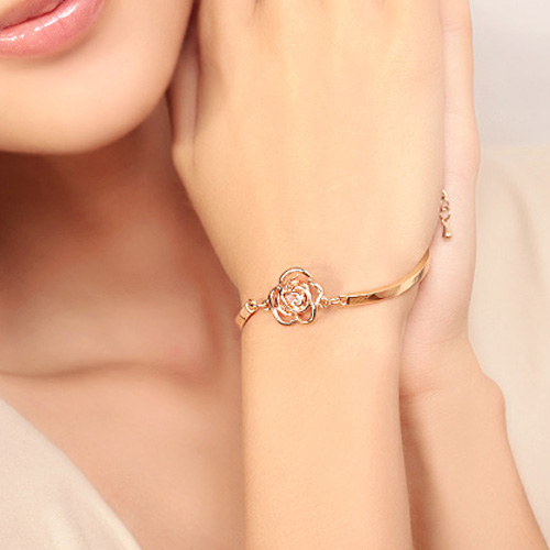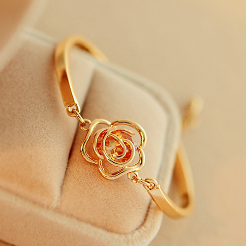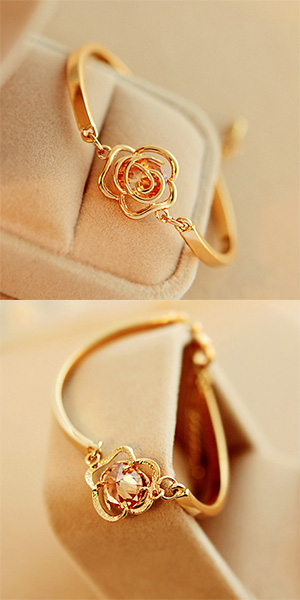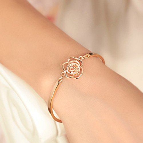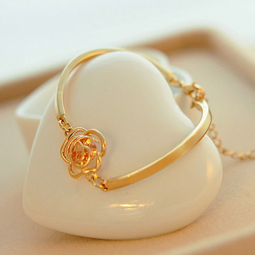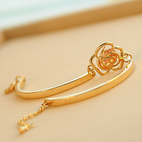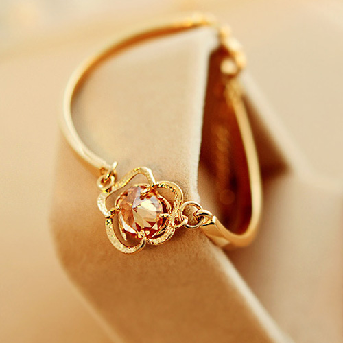 Fashion Gold-tone Rhinestone Camellia Bracelet