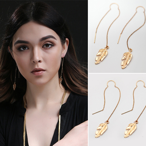 and feather details,this pair of gold-tone earrings can give you a best look. Make space in your accessory box for them.