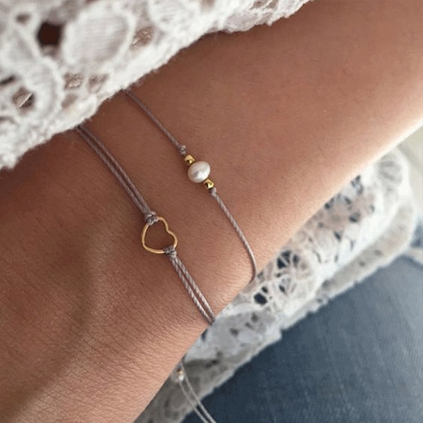 Fashion Heart Beaded Linkled Braided Bracelet Set 2 pcs/Set