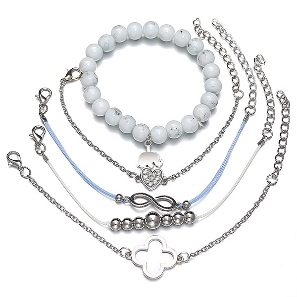Fashion Heart Elephant Pendant Beaded Bracelet Set 5 pcs/Set