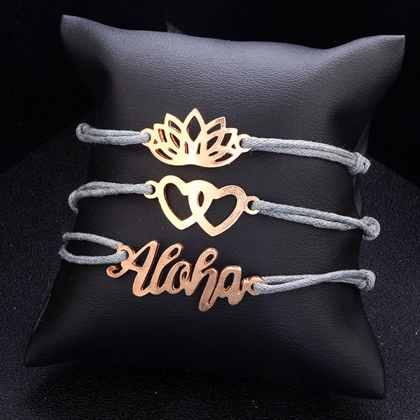 This bracelet set comes with 3 pieces different bracelets,decorated with heart and lotus flower pendant,