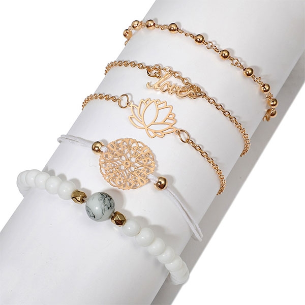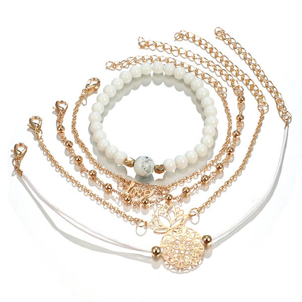 Fashion Hollow Out Flower Beaded Bracelet Set 5 pcs/Set
