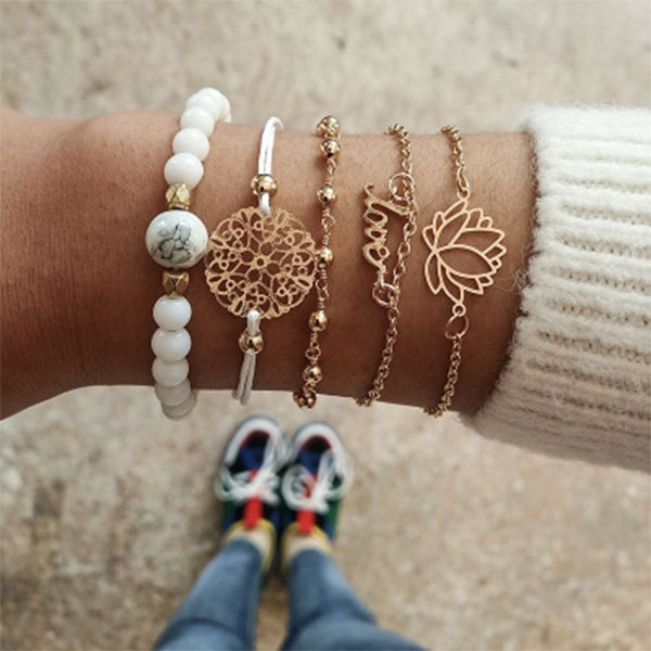 Add a dash of beauty to your overall look with the help of this bracelet set. Including 5 pieces different rings,