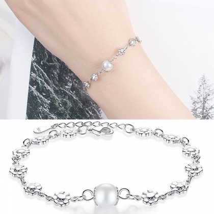Fashion Imitation Pearl Inlaid Plum Flower Bracelet
