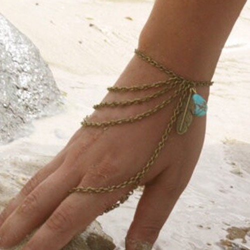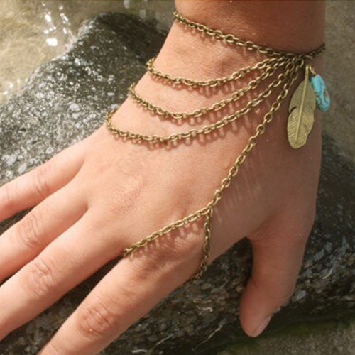 Fashion Leaf Pendant Multi-layer Tassel Bracelet