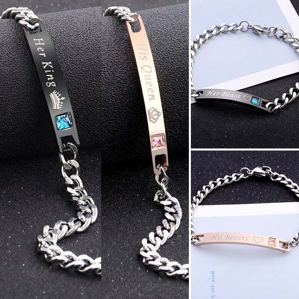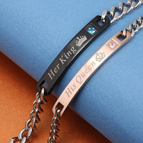 This couple bracelet is a good way to showcase your sweet and romantic love. Engraved with letters,