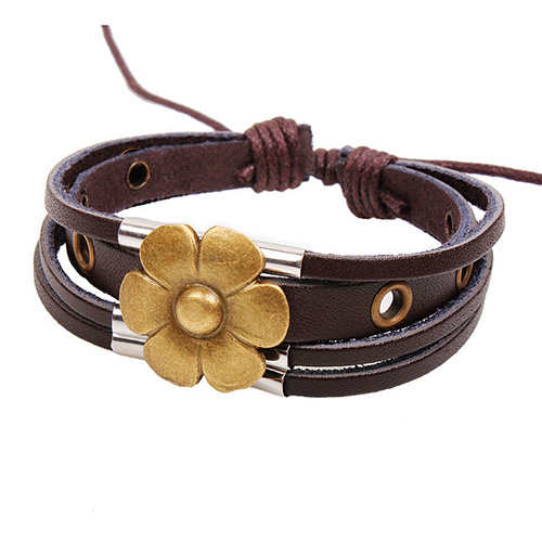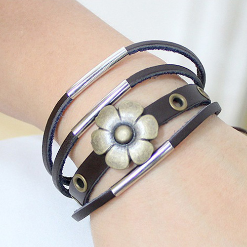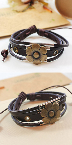 This PU leather bracelet is decorated with a lucky flower,which stands for lucky