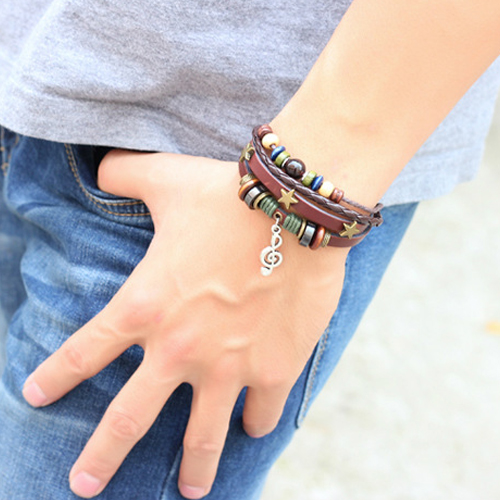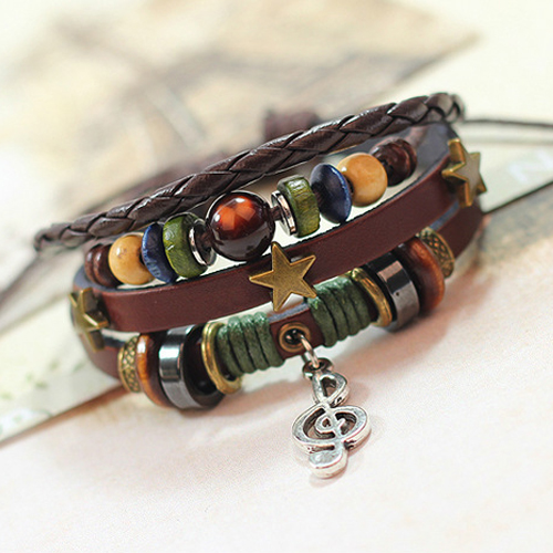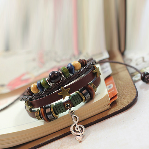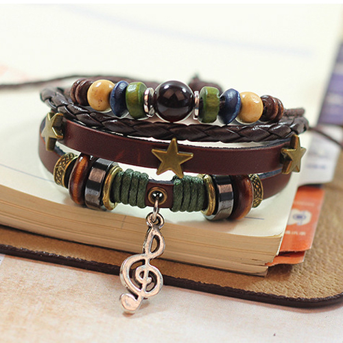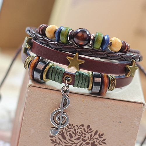 Fashion Musical Note Pendant Beaded Braided Bracelet